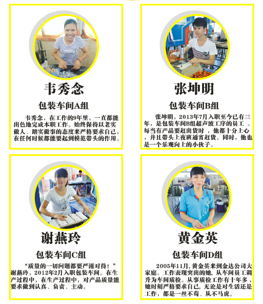 8月4日, 2016年度廣東金達(dá)勞動(dòng)標(biāo)兵完滿落幕。該活動(dòng)自7月初以來(lái),歷時(shí)了1個(gè)月時(shí)間,經(jīng)過(guò)前期激烈的投票評(píng)選,金達(dá)公司堅(jiān)持公開(kāi)、公平、公正的評(píng)選原則,建立管理層評(píng)選團(tuán)評(píng)審,實(shí)行員工代表無(wú)記名投票方式;經(jīng)過(guò)激烈的投票評(píng)選,最終廣東金達(dá)“2016年度勞動(dòng)標(biāo)兵”名單火熱出爐: