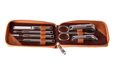 包裝規格:130mm*79mm*27mm 產品規格:120mm*70mm 單套重量:166g 材質:PU+420不銹鋼+鋅合金+碳鋼 配件:RM6432指甲鉗、美容剪、斜口指甲鉗、指甲銼、暗瘡針、眉夾、刮刀